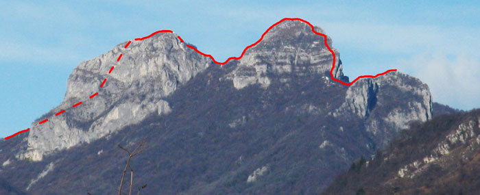 - immagini delle cime a colori con il tracciato dele vie di salita
