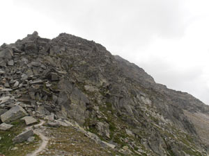 La via è chiaramente visibile dal rifugio. Il sentiero sale fra roccette e qualche brevissimo tratto scivoloso e friabile.