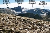 Il successivo pendio di sfasciumi (vedi prima immagine di dettaglio) conduce facilmente ad un intaglio sulla costola rocciosa a N della (q. 2906 m). Dopo aver scavalcato la costola, si risale l’elementare pendio finale orientato a S che conduce in breve sulla pianeggiante vetta.