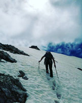 Consigliati ramponi e piccozza a maggio/giugno, negli anni particolarmente nevosi. Ad estate inoltrata e quindi senza neve, la salita dal pian della Tenda avviene per evidente traccia ghiaiosa fino a poco sotto la cima. Pochi e semplici passi di II, ci conducono poi alla panoramica vetta.