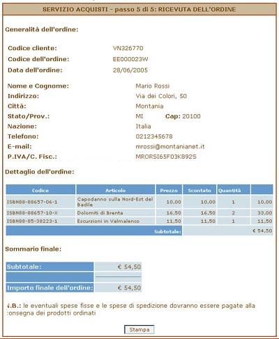 La ricevuta potrà essere stampata dall'utente che è tenuto a conservarla.