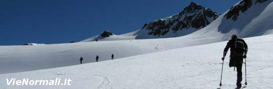 Monte San Matteo - 3678 m Regione: Lombardia Punto di partenza: Rif. Berni al Passo Gavia (q. 2560 m) Versante di salita: SW Dislivello di salita: 1060 m Dislivello totale: 2120 m Tempo di salita: 5 h Tempo totale: 8 h Difficoltà: EE - AG - PD- (scala difficoltà) Punti di appoggio: Rif. Berni al Passo Gavia (q. 2560 m) Tipo di salita: Traccia su ghiacciaio Attrezzatura: |